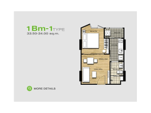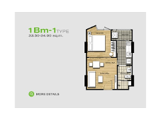 - ขนาดห้อง : 1 ห้องนอน 33.50 ตร.ม