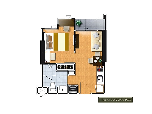 1 Bedroom 1 Bathroom 30.54 Sq.m,
