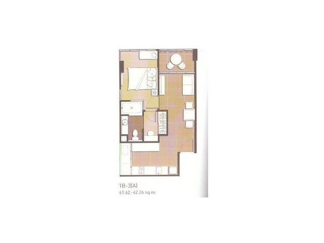 ชั้น 3 อาคาร A ขนาด 43.03 ตร.ม. ห้องมุมด้านทิศใต้ มีระเบียง 2 ที่ ทางด้าน BTS และ Hive