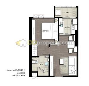 ขายดาวน์คอนโด The Room BTS วงเวียนใหญ่ 1 Bedroom ชั้น 14 ห้องชุดหมายเลข A10 พื้นที่ 43.5 ตารางเมตร