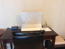 Kitchenette with kitchenware and standard appliances (Refrigerator, Microwave, Stove etc.)