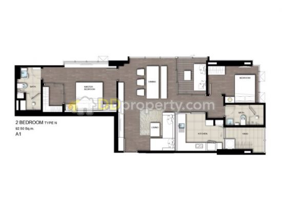 ขายดาวน์คอนโด The Room BTS วงเวียนใหญ่ 2 Bedroom ชั้น 23 ห้องชุดหมายเลข A1 fully fitted พื้นที่ 92.5 ตรม.