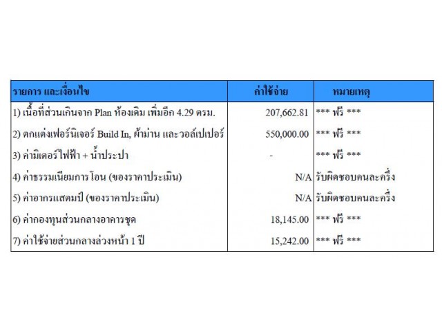 ราคาต่อตารางเมตร | บาท/ตารางเมตร |