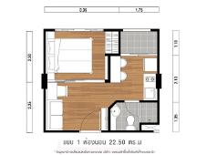 1 ห้องนอน : ขนาด 22.50 – 26.00 ตร.ม.