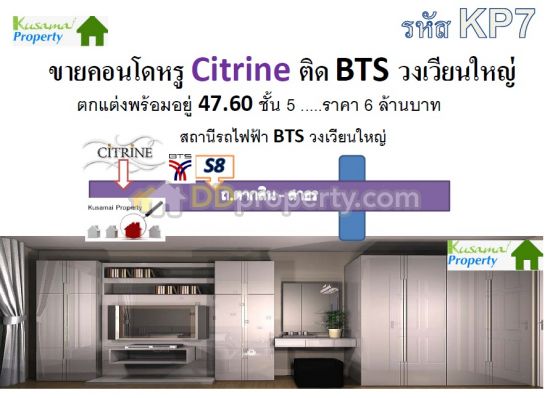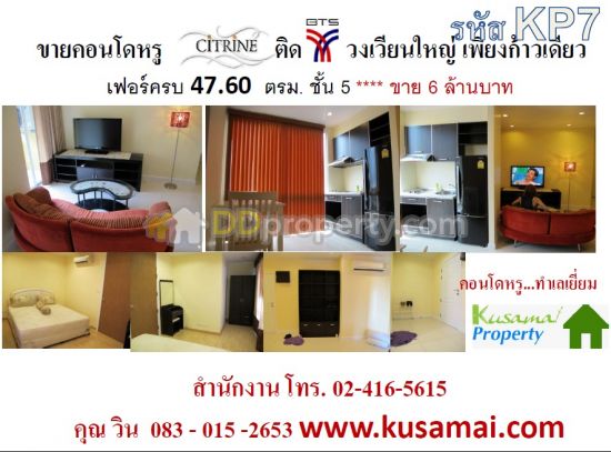 ขายคอนโด Citrine ติด BTS วงเวียนใหญ่ ตกแต่งพร้อมอยู่ 47.60 ราคา 6 ล้านบาท - คอนโด ขาย