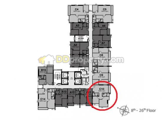 ขนาด 60.5 ตร.ม. ชั้น 16 ด้านหน้าอาคาร ถ.นราธิวาส