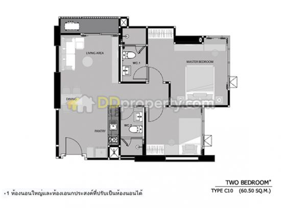 2 ห้องนอน(ห้องมุม) 2 ห้องน้ำ 1 living room
