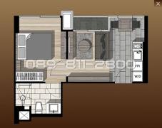 ห้องขนาด 32 ตารางเมตร 1 ห้องนอน 1 ห้องน้ำ 1 ห้องครัว 1 ห้องนั่งเล่น ระเบียง ชั้น 8 (ชั้นบนสุด) วิวสระว่ายน้ำ
