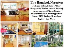 The Bangkok Narathiwas Ratchanakarint For Sale near BRT Technic Krungthep 1 bedroom fully furnished ready to move in.