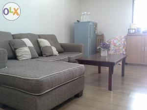 ตู้เย็น โซฟา+โต๊ะกลาง พื้นปูลามิเนต เหล็กดัด ผ้าม่าน