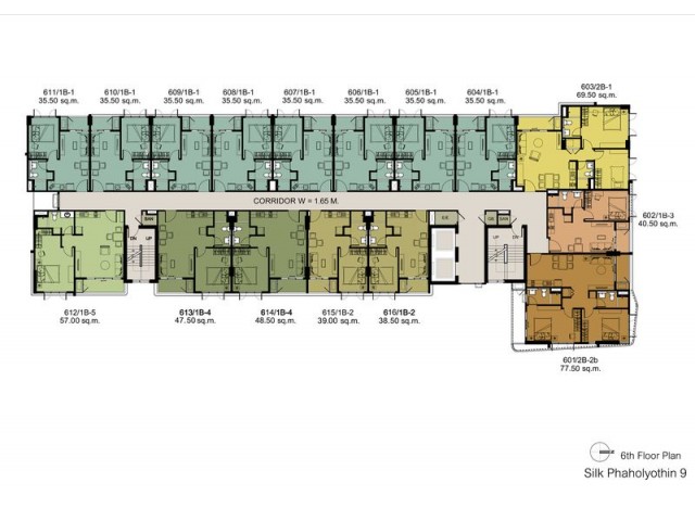 - แบบ1 ห้องนอน ชั้น 6 หันไปทางบ้านเดี่ยว