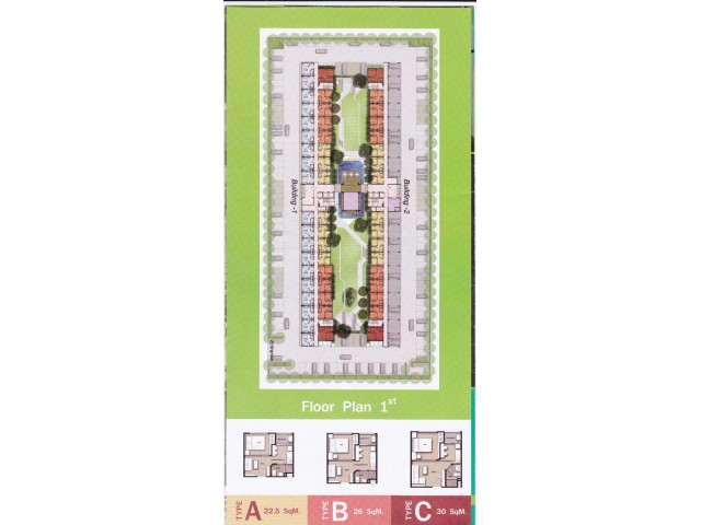 ห้องขนาด 22.5 ตร.ม. 1 ห้องนอน 1 ห้องน้ำ