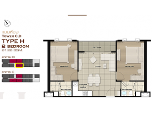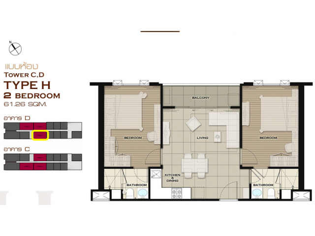 ขายดาวน์ คอนโด Manor สนามบินน้ำ 2 ห้องนอน 61.26 ตรม ชั้น 17 ตึก D วิวสวน+แม่น้ำ ตำแหน่ง D11H