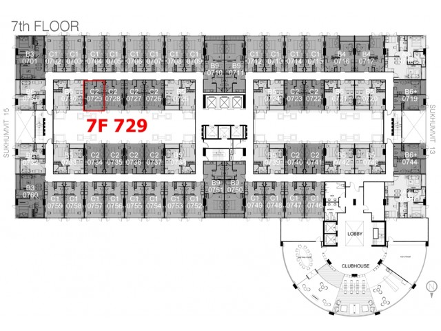 ชั้น7 Studio 1 ห้องน้ำ แบบห้อง C2