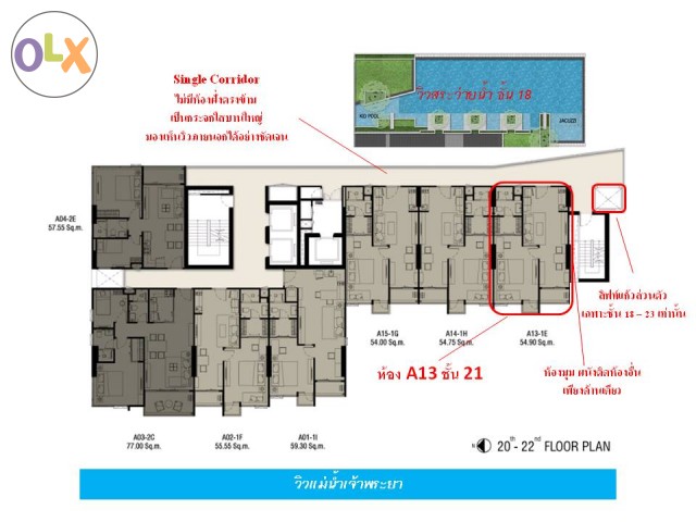 - ขายใบจอง The Room เจริญกรุง30 ห้องชุดเลขที่ A13 ชั้นที่ 21 เนื้อที่ 54.90 ตรม.แบบ 1 ห้องนอน 1 ห้องน้ำ