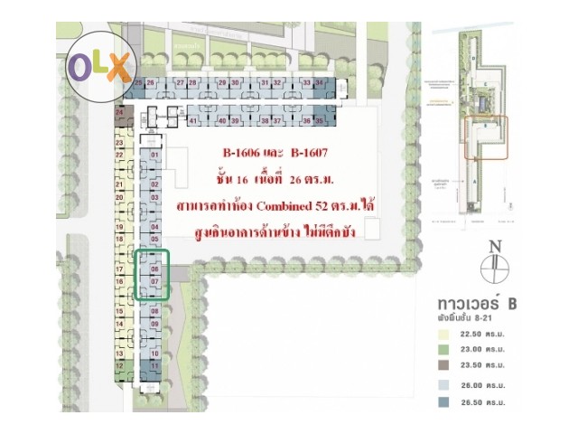 ห้อง B-1606 และ 1607 ขนาด 26 ตร.ม.