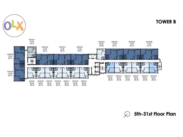 ตึกB 1ห้องนอน ชั้น5 ห้อง511 ฝั่งสวน