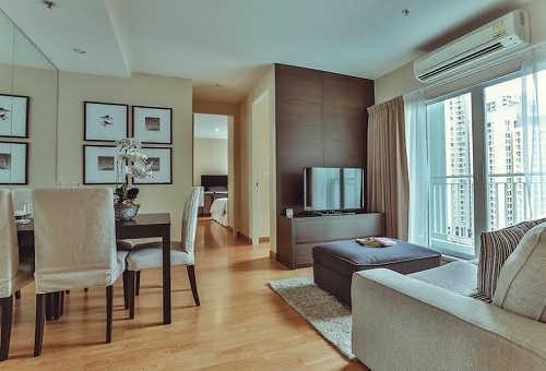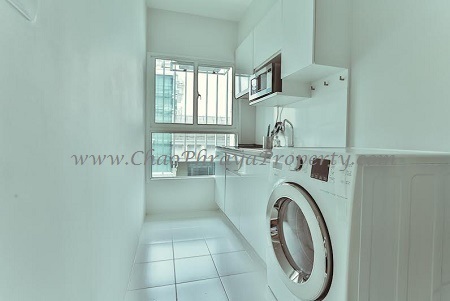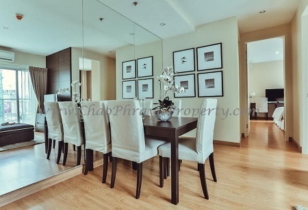A fully furnished 2-bed, one bath 54 square metre, 18th floor unit for sale for 5.79M baht. Closed to MRT Petchaburi Station and Airport link.