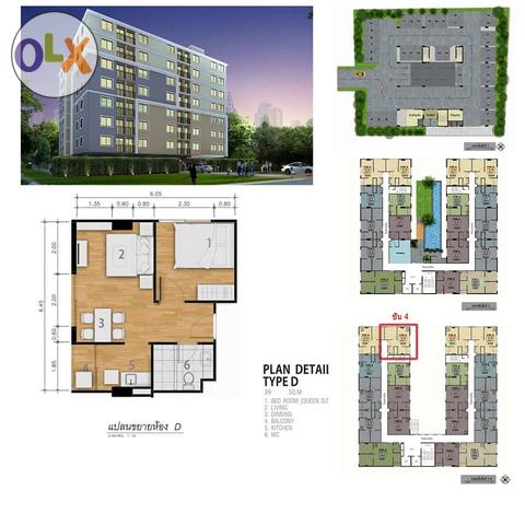 1 ห้องนอน 1 ห้องนั้งเล่น 1 ห้องน้ำ 1 ห้องครัว ขนาด 39 ตรม.