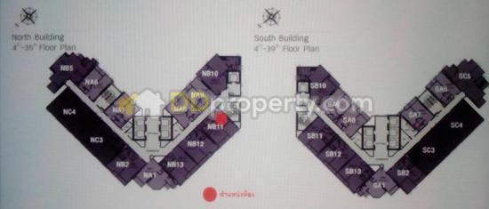 ชั้น 21 ห้อง NB11 เป็นห้องมุม ขนาด 45.5 ตร.ม. ตึก North วิวแม่น้ำ