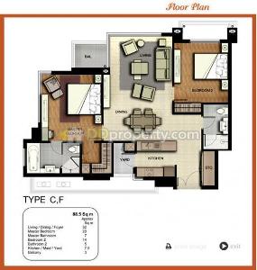 แมนฮัตตัน ชิดลม (Manhattan Chidlom) ขนาด 2 ห้องนอน 88.5 ตรม. ชั้น 36