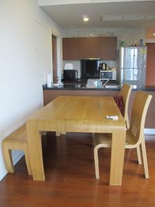 Fully furnished 2 bedrooms 2 bathrooms (showers, no bathtub) at The Wind Condo, Asoke, only 8-10 minutes walking to BTS Asoke, few steps from Asoke Rd, yet the condo is in the quiet nice area. This apartment is fully furnished on 10th fl., pool view, balcony. both bedrooms have good city view, no blocked view. Equipped with small oven, washing machine, vacuum cleaner, 3 TV in all rooms, fridge, microwave, coffee machine, kettle, …, etc. facilities : gym, pool, lobby, parking, security, key card access.