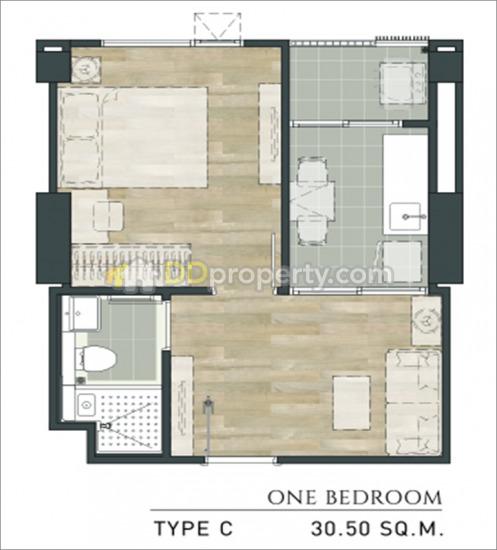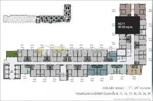 ห้อง AC11 แบบ One Bedroom ขนาด 30.5 ตร.ม. ฝั่ง Hikari