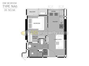 ขายคอนโด RHYTHM สาธร ชั้น 24 แบบห้อง NA06 ขนาด 35.00 ตารางเมตร