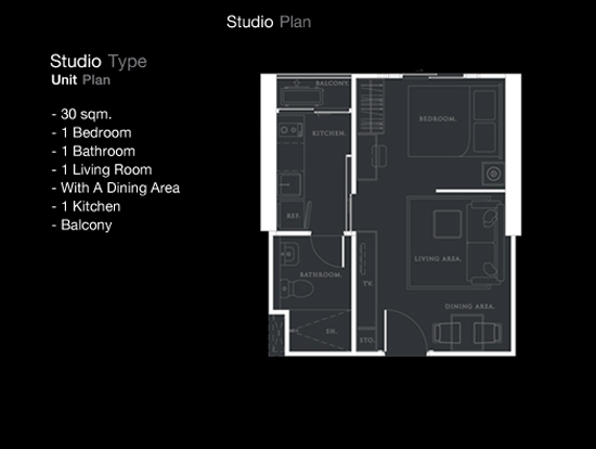 ว่างเช่าแล้วนะ คอนโด Rich Park @ Triple Station 1 ห้องนอน 1 ห้องน้ำ ขนาด 28.60 ตร.ม.