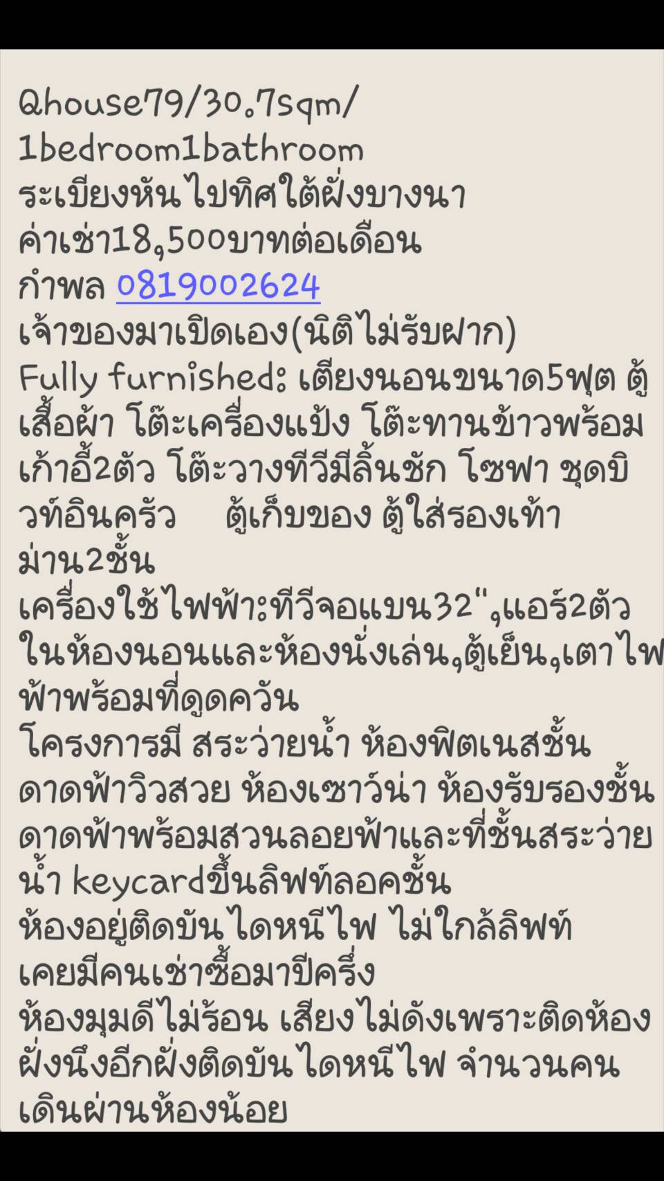 Condo for Rent เช่า ++Q House โครงการติด BTS กรุงธนบุรี ชั้นสูง วิวดี