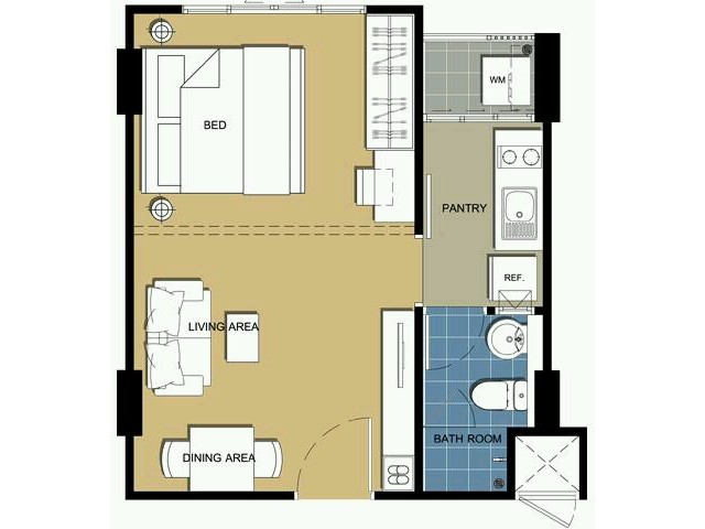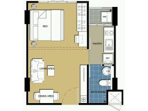 ห้องสตูดิโอ มีระเบียงส่วนตัว เป็นส่วนตัว ห้องอยู่ชั้น 5 อาคาร B