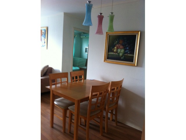 60 square meters with 1 big bedroom and 1 small bedroom, 2 bathrooms, 1 kitchen with stool, balcony. Fully furnished.