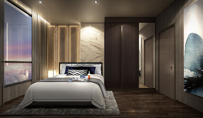 ขนาดห้อง 57.25 ตรม. แบบ 2 ห้องนอน อยู่ชั้น 17