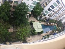 วิวสระว่ายน้ำและสวนสวยๆ โครงการมีรถตู้รับ-ส่ง BTS สถานีวุฒากาศ
