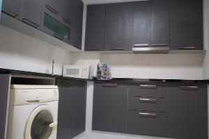 - Well-equipped kitchen with a countertop, a work surface with a suite of cupboards and drawers above and below along with some installed appliances that are ready for use.