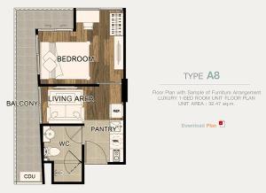 ขายคอนโด 1 นอน ชาโตว์ อินทาวน์ รัชดา 19 ใกล้ MRT รัชดาเพียง 190 ม. 31.9 ตรม ชั้น 8 ห้องมุมไม่วุ่นวาย
