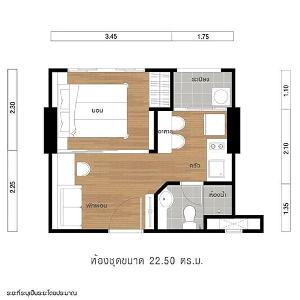 ขนาดพื้นที่ 22.0 ตารางเมตร