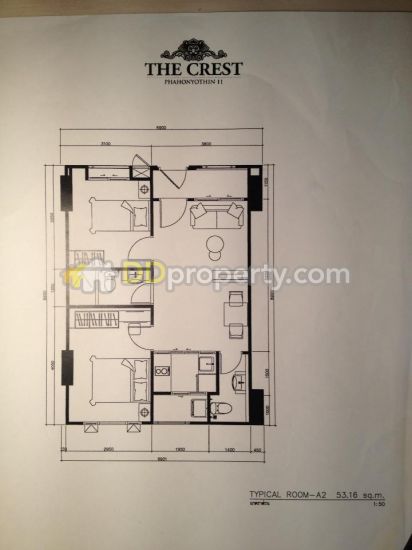 ขายคอนโด The Crest Condo พหลโยธิน 11 ใกล้ BTS สะพานควาย 2 ห้องนอน 1 ห้องน้ำ 127 ตรม. ชั้น 30