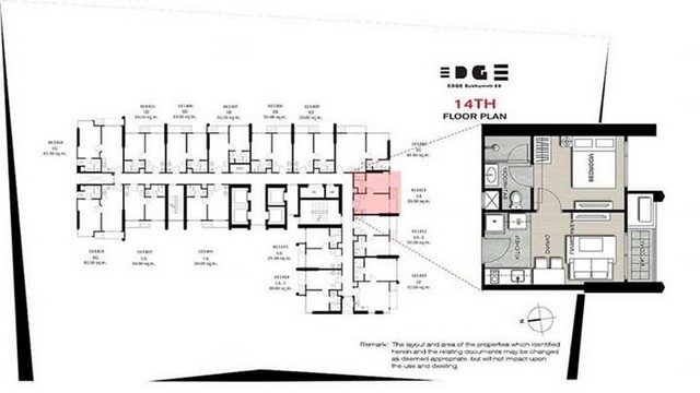 Edge Sukhumvit 23 (เอดจ์ สุขุมวิท 23) ขนาด 30.99 ตร.ม 1 นอน 1 น้ำ ชั้น 14 มีอาคารเดียว ฟรีค่าโอน