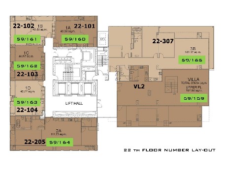 ห้อง Villa 3 ห้องนอน 2 ห้องน้ำ ขนาด 392.59 ตร.ม. ชั้น 21-22