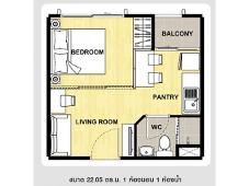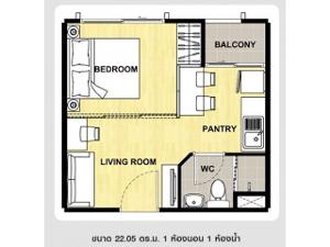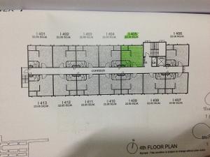 ตึก I (ด้านหน้าโครงการ) ชั้น 4 ห้อง 405 ขนาด 22.05 ตร.เมตร ห้องฝั่งทิศเหนือ