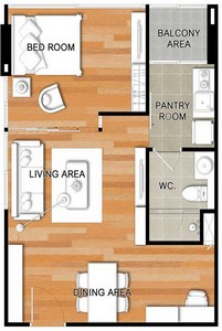 1 ห้องนอน 1 ห้องน้ำ พื้นที่ 44.4 ตารางเมตร ชั้น 2
