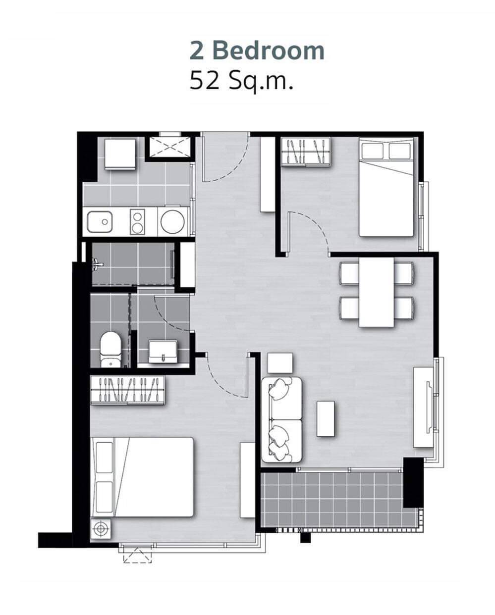 ขาย คอนโด เพดานสูง 2.8 เมตร ขนาด 53.31 ตรม. (ตามโฉนด) 2 ห้องนอน