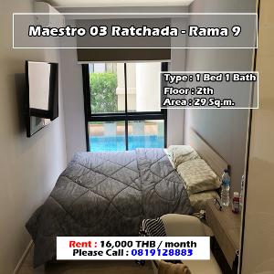 ID - 192282 Maestro 03 Ratchada - Rama 9 (มาเอสโตร 03 รัชดา-พระราม 9) 1 ห้องนอน 1 ห้องน้ำ พื้นที่ 29 ตร.ม. ชั้น 2 วิวสระว่ายน้ำ เฟอร์นิเจอร์ครบ เช่า 16,000 บาท / เดือน สนใจติดต่อ 0819128883 Line:@Easyhomeland ID - 192282 Maestro 03 Ratchada - Rama 9 (Maestro 03 Ratchada-Rama 9) 1 bedroom, 1 bathroom 29 sq.m., 2nd floor, pool view fully furnished Rent 16,000 baht / month Please contact 0819128883 Line: @Easyhomeland รหัส: #02282 ประเภทอสังหาริมทรัพย์: คอนโดมิเนียม ประเภท: ประกาศเช่า ลงประกาศเมื่อ: 25/07/2019 11:48:03 ราคา: 16,000บาท ลิ้งค์เพิ่มเติม: สถานที่ตั้งทรัพย์สิน ที่อยู่: ตั้งอยู่บน 322/81 ซอย รัชดาภิเษก 3 แขวง ดินแดง เขต ดินแดง กรุงเทพมหานคร 10400 อำเภอ/เขต: เขตดินแดง จังหวัด: กรุงเทพมหานคร ข้อมูลเพิ่มเติม เนื้อที่: 29 ตรว. พื้นที่ใช้สอย: 29 ตรม. ห้องนอน: 1 ห้อง ห้องน้ำ: 1 ห้อง รายละเอียดเพิ่มเติม สิ่งอำนวยความสะดวกที่ Maestro 03 Ratchada - Rama 9 (มาเอสโตร 03 รัชดา-พระราม 9) รวมทั้ง ลิฟท์ ที่จอดรถ การรักษาความปลอดภัย 24 ชั่วโมง กล้องวงจรปิด สระว่ายนำ้ ฟิตเนส สวนหย่อม / พื้นที่จัดบาร์บีคิว ค่าส่วนกลาง ฿65 ต่อ ตรม. ต่อเดือน, ค่ากองทุน ฿650 ต่อ ตรม. สถานที่ใกล้เคียง Maestro 03 Ratchada - Rama 9 (มาเอสโตร 03 รัชดา-พระราม 9) เดินทางสะดวกเพียง 770 เมตร หรือประมาณ 9 นาที เดินจาก พระราม 9 ถ้าคุณเดินทางด้วยรถยนต์ ทางด่วนที่ใกล้ที่สุดอยู่ที่ 1.3 กิโลเมตร จากคอนโด หลากหลายร้านค้าในบริเวณรอบๆคอนโด: เซ็นทรัลพลาซา แกรนด์ พระร URL: http://www.easyhomeland.com/property2.php?h_id=02282