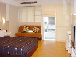 ห้องสวยน่าอยู่ 28 ตรม. studio เฟอร์นิเจอร์บิลท์อินทั้งห้อง บนชั้นที่ 12 วิวฝั่งสนามกีฬาฯ สวยมาก เครื่องใช้ไฟฟ้าครบครัน; TV 29", MICROWAVE, FRIDGE, AIR CON., WATER WARMER, etc.