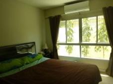 ห้องนอน : เตียงขนาด 5 ฟุต, แอร์ 13000 BTU,โต๊ะข้างเตียง,โคมไฟ,ตู้เสื้อผ้า,