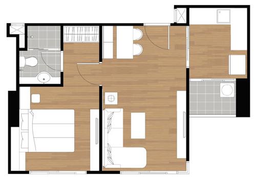• สามารถกั้นเป็น 2 ห้องนอนได้ ทำให้ราคาถูกกว่าห้อง combine 52 sq.m. ชั้นเดียวกันเกือบ 7 แสนบาท