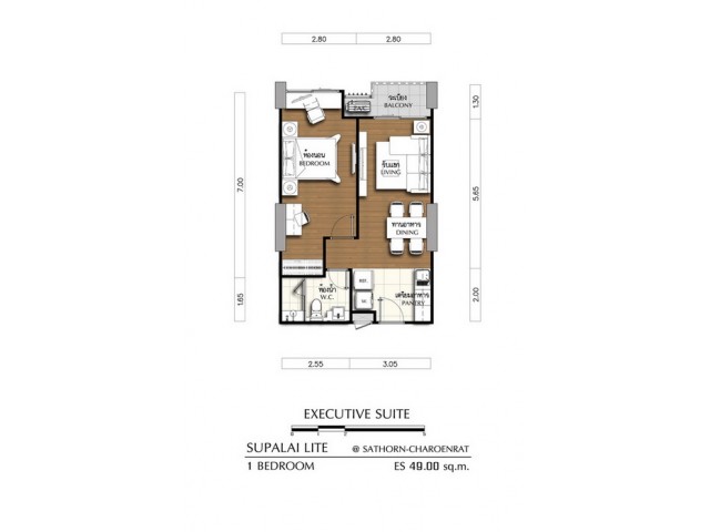 ขนาดพื้นที่ 49.0 ตารางเมตร
