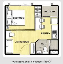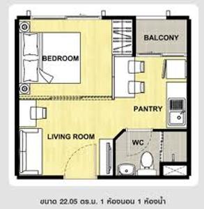 ตึก I (ด้านหน้าโครงการ) ชั้น 4 ห้อง 405 ขนาด 22.05 ตร.เมตร ห้องฝั่งทิศเหนือ