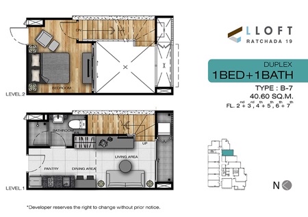 ขาย แอล ลอฟท์ รัชดา 19 L LOFT RATCHADA 19 ขนาดห้อง : 40.36 ตารางเมตร แบบ Duplex มี 2 ชั้น